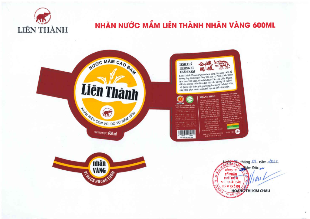 Thông báo bổ sung thiết kế nhãn sản phẩm Nước mắm cao đạm Liên Thành Nhãn Ngọc