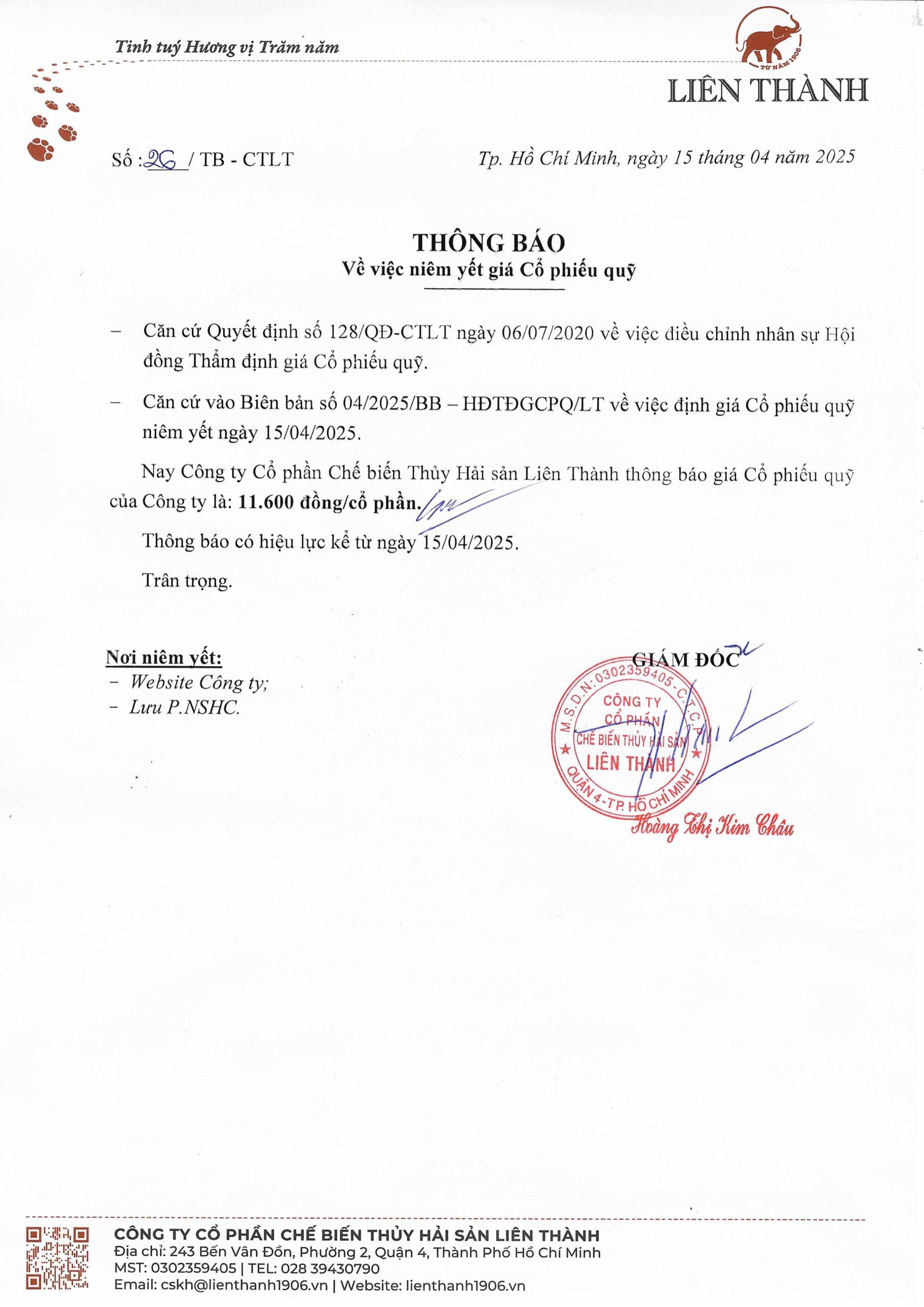 THÔNG BÁO NIÊM YẾT CỔ PHIẾU QUỸ 15/4/2025