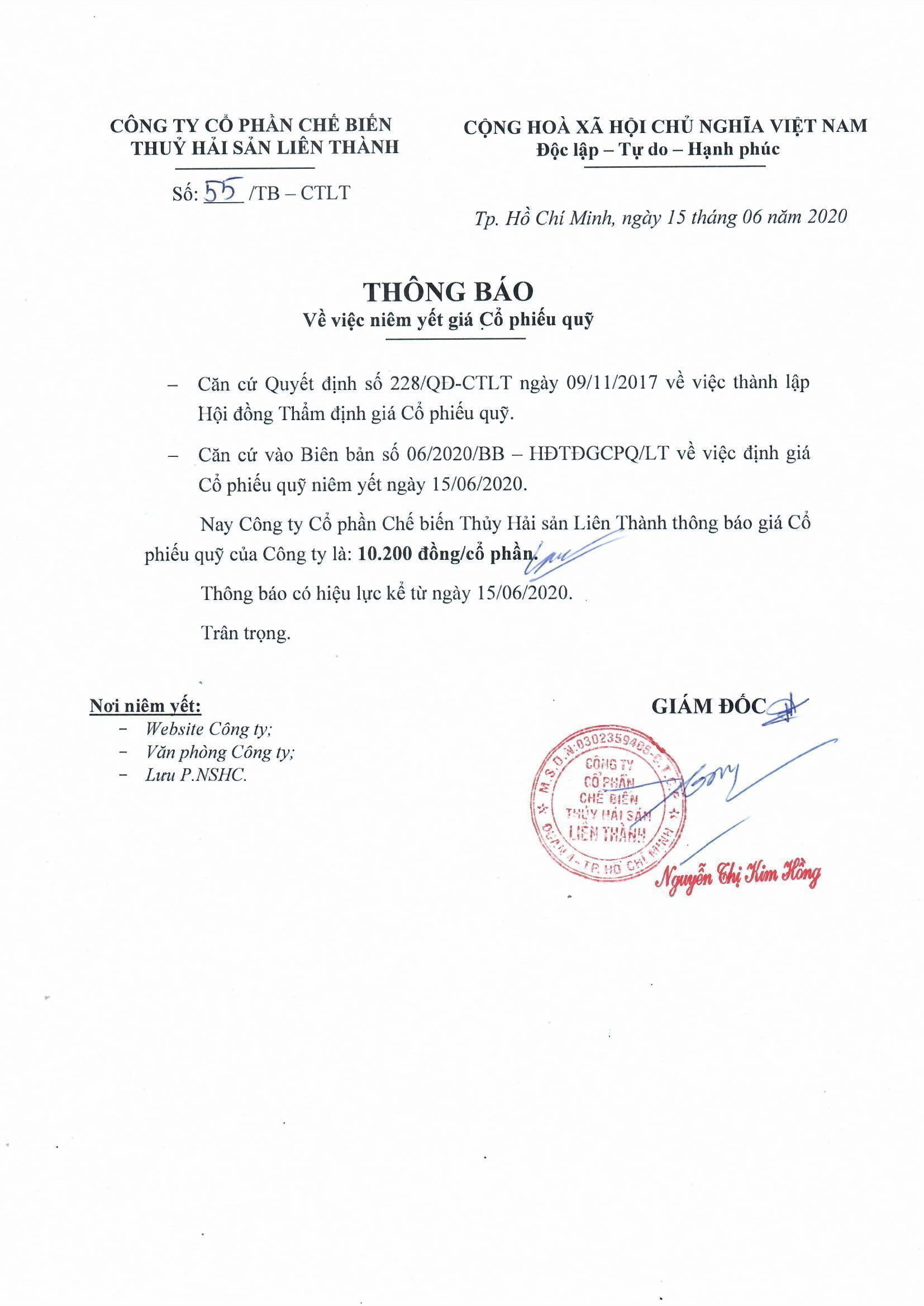 THÔNG BÁO VỀ VIỆC NIÊM YẾT GIÁ CỔ PHIẾU CỦA CÔNG TY CP CB.THS LIÊN THÀNH NGÀY 15/06/2020 23 September, 202323 June, 2021