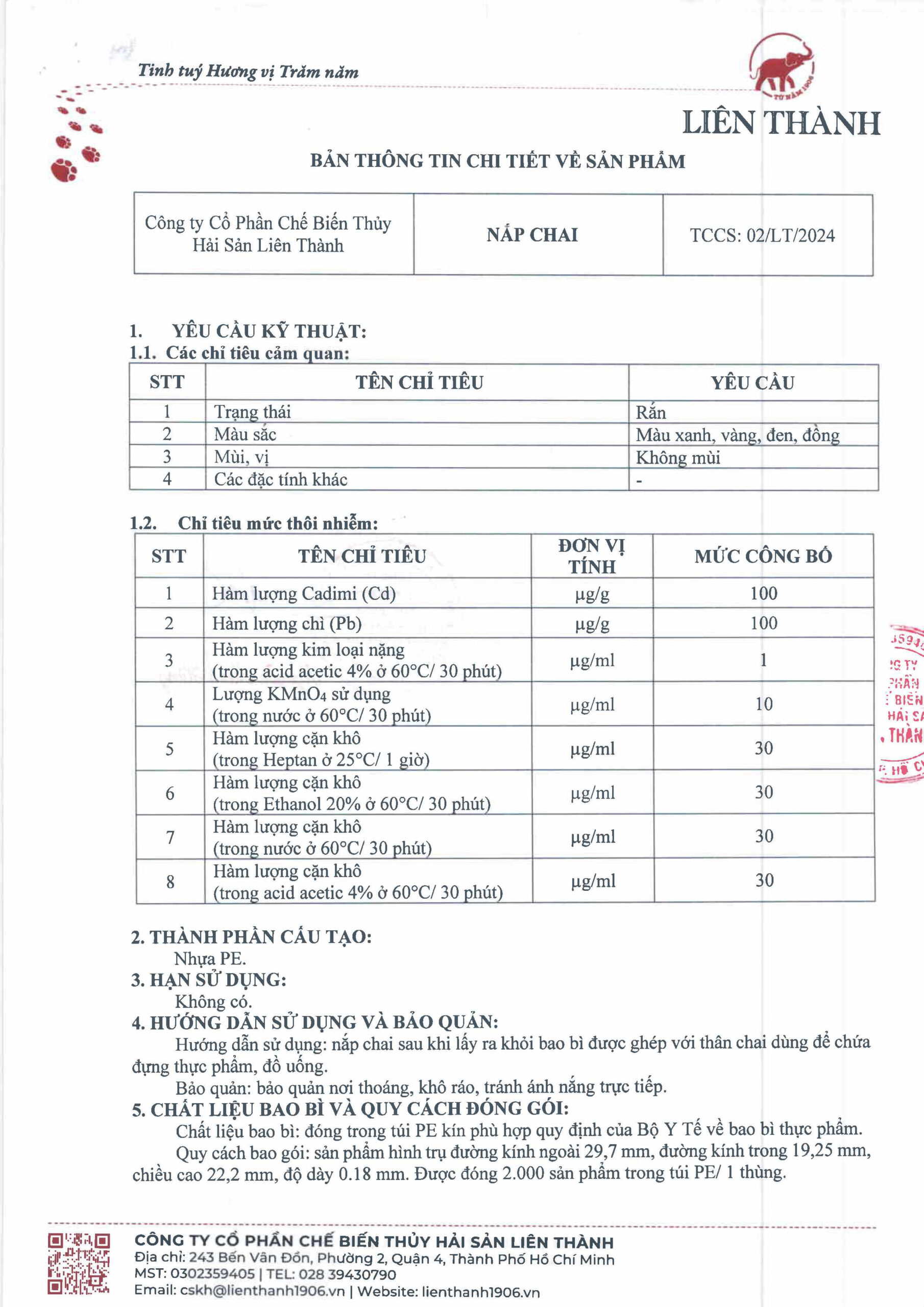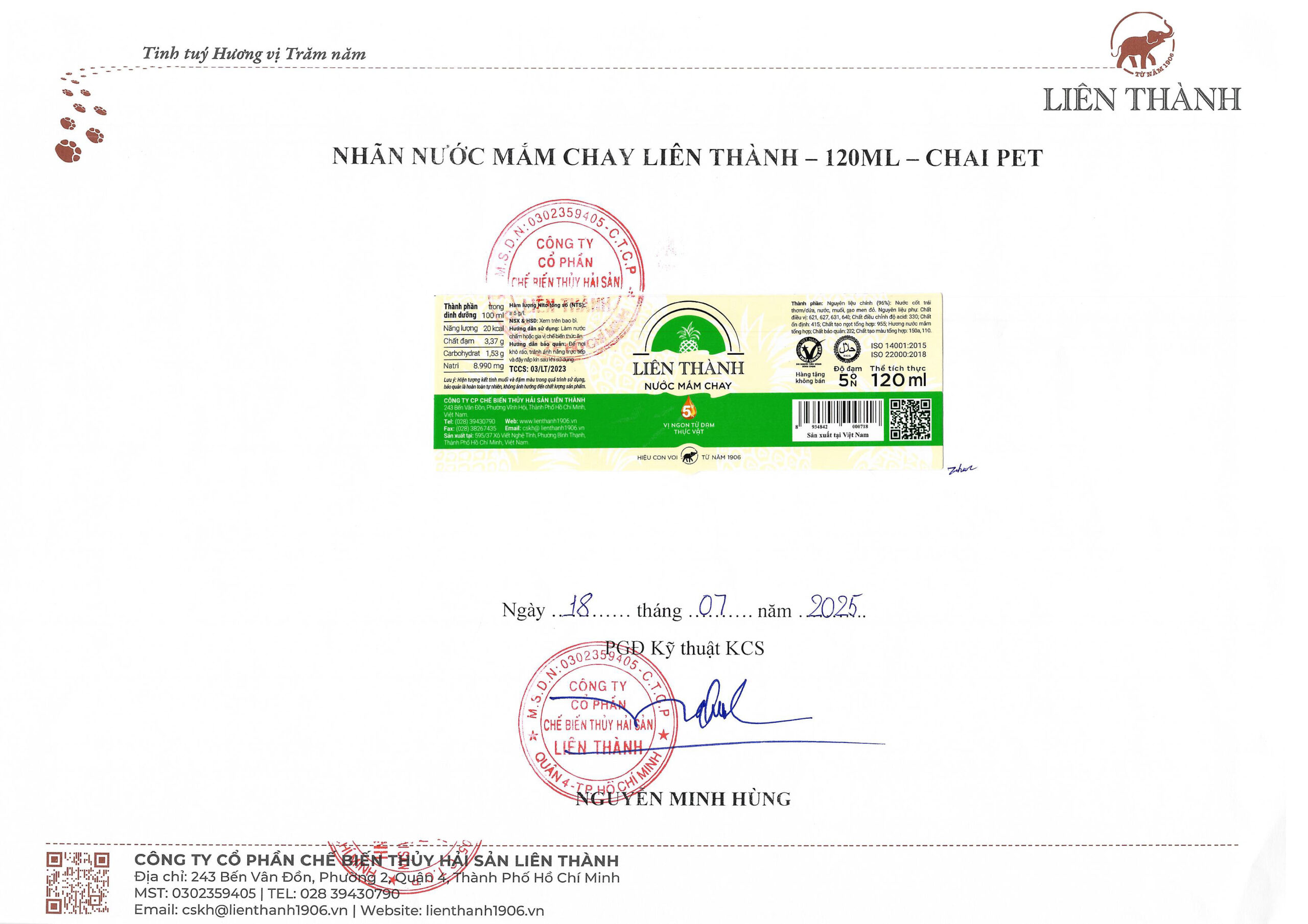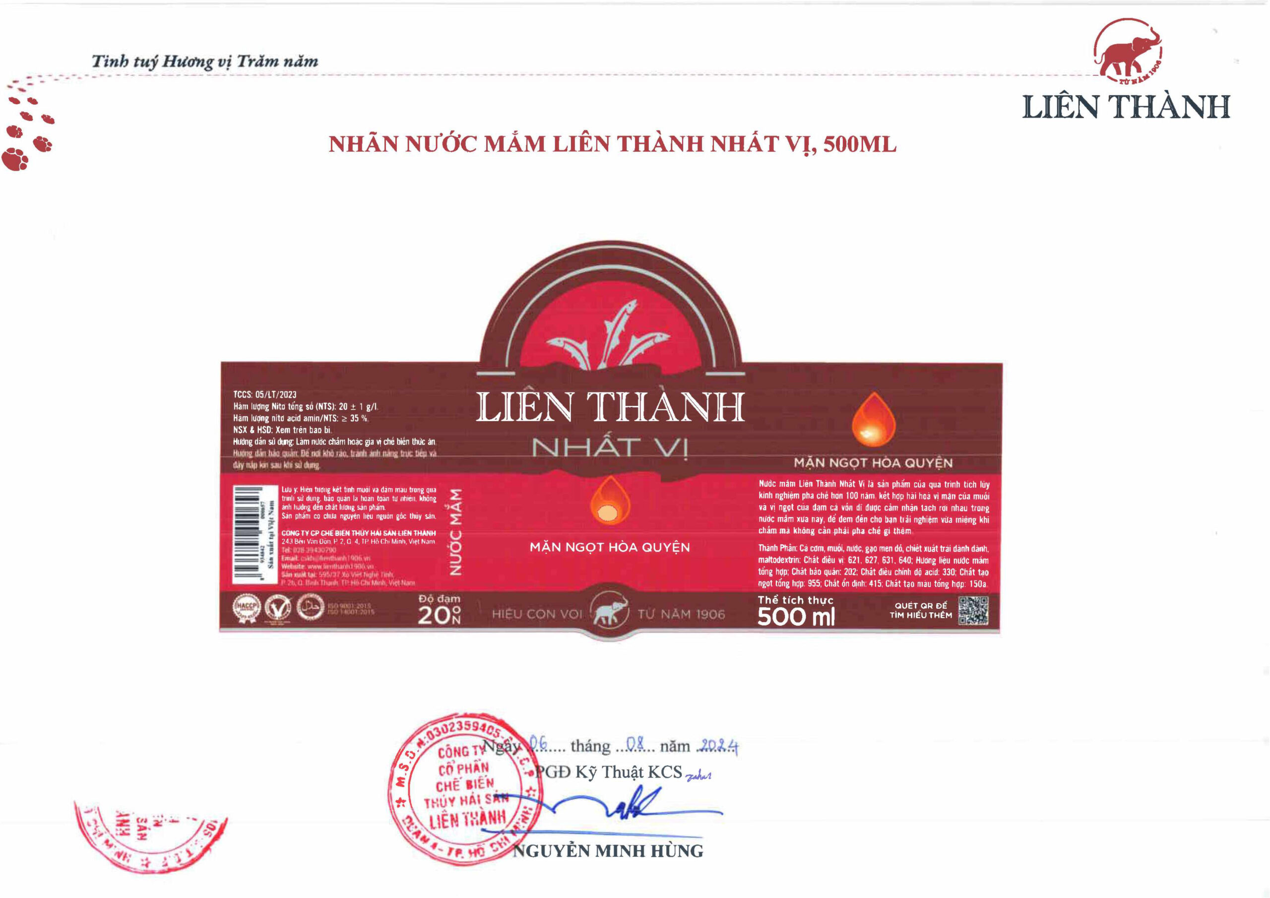 CÔNG VĂN THÔNG BÁO ĐIỀU CHỈNH BỔ SUNG THIẾT KẾ TRÊN NHÃN NƯỚC MẮM CAO ĐẠM LIÊN THÀNH NHÃN VÀNG VÀ NHÃN NGỌC 500ML