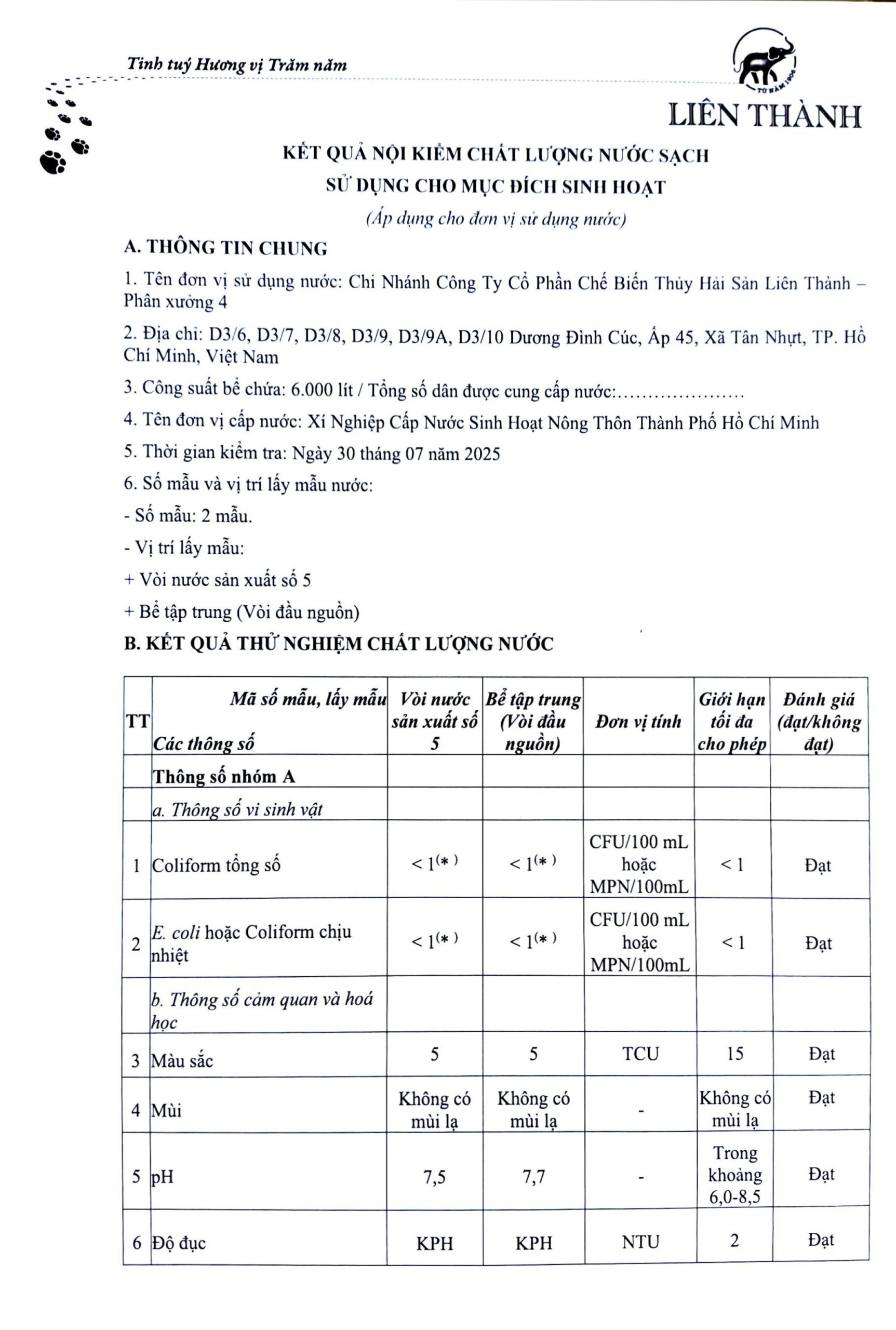 KẾT QUẢ KHẢO SÁT ĐO ĐẠC MÔI TRƯỜNG CHI NHÁNH CÔNG TY CỔ PHẦN CHẾ BIẾN THỦY HẢI SẢN LIÊN THÀNH- PHÂN XƯỞNG 4 25 July, 202413 October, 2023