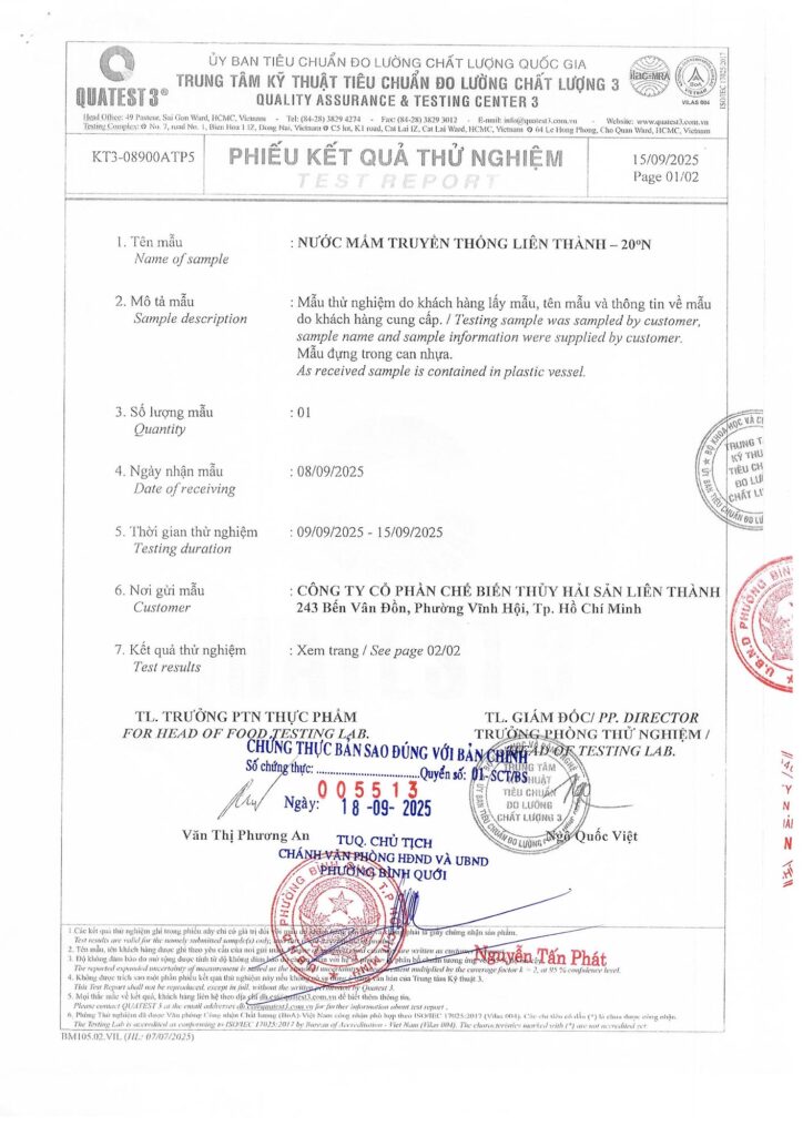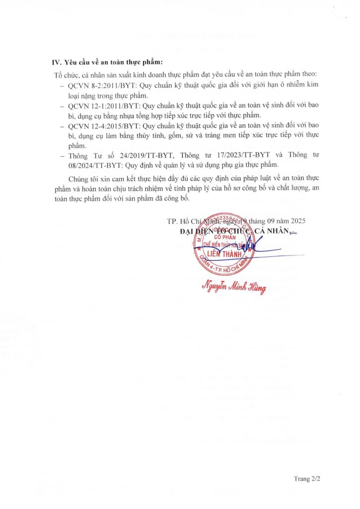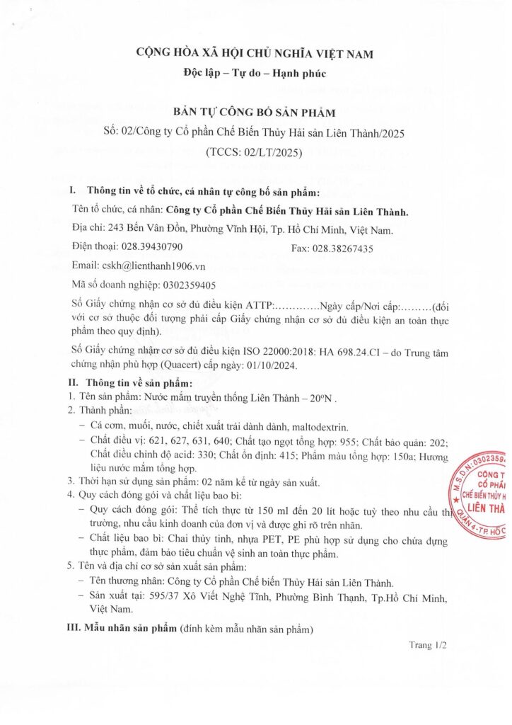 Bài trước Bài sau Bản tự công bố sản phẩm Nước mắm truyền thống Liên Thành 20 độ đạm lienthanh 23 September, 2025 9:45 am Các tin tức liên quan Bản tự công bố sản phẩm Nước mắm Liên Thành Nhất Vị (11/2025) Xem thêm » 26 November, 2025 Bản tự công bố sản phẩm Nước mắm chay Liên Thành Hương Nấm (11/2025) Xem thêm » 26 November, 2025 Bản tự công bố sản phẩm Nước mắm Liên Thành Nhất Vị Xem thêm » 13 November, 2025 Thông báo cập nhật địa chỉ trên tự công bố và nhãn sản phẩm (11/2025) Xem thêm » 5 November, 2025 Thông báo cập nhật thông tin địa chỉ trên tự công bố và nhãn Nước mắm truyền thống Liên Thành Nhãn Đỏ Xem thêm » 13 October, 2025 Thông báo bổ sung thiết kế nhãn sản phẩm Nước mắm cao đạm Liên Thành Nhãn Ngọc Xem thêm » 13 October, 2025