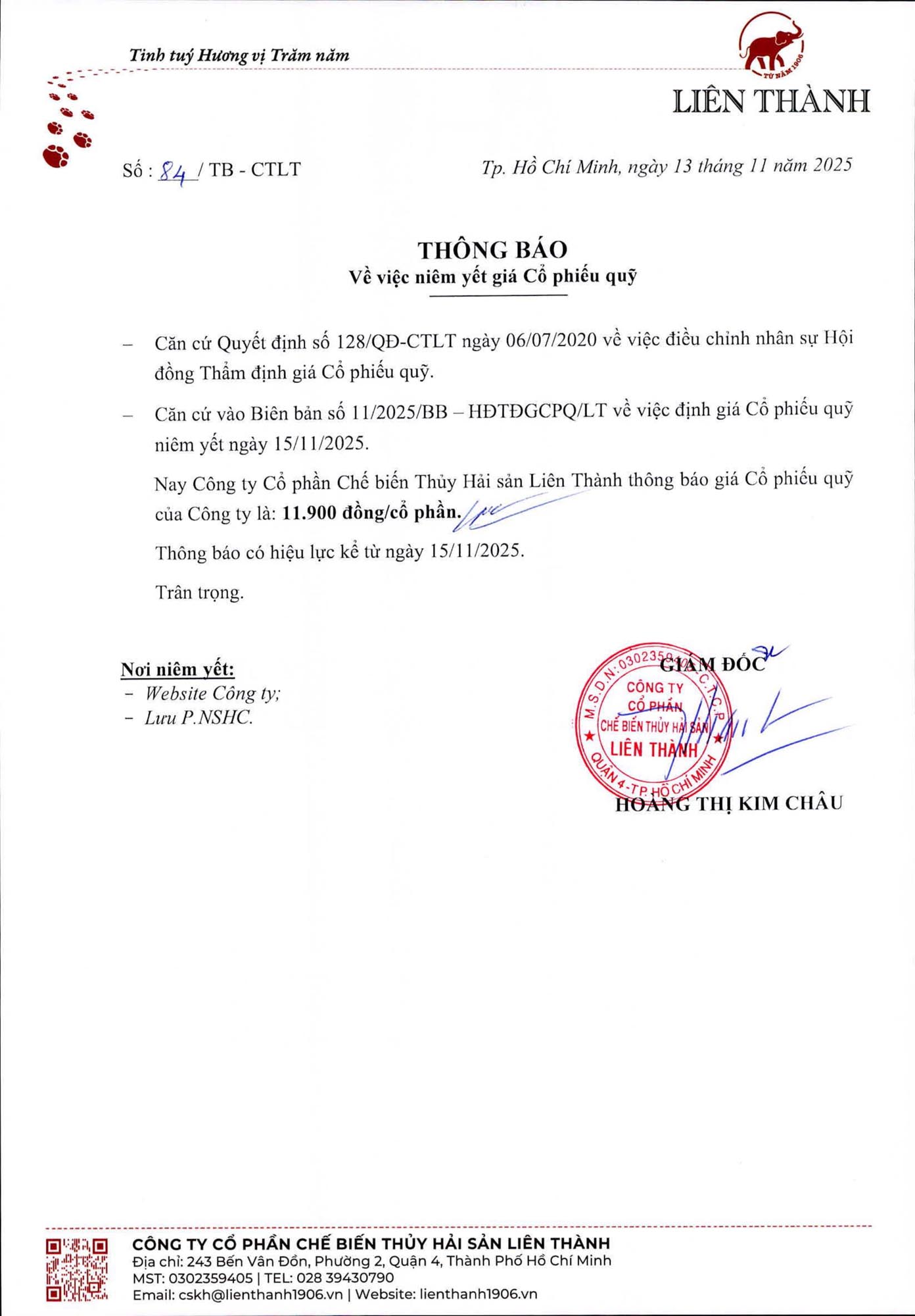 THÔNG BÁO NIÊM YẾT CỔ PHIẾU QUỸ 11/2025
