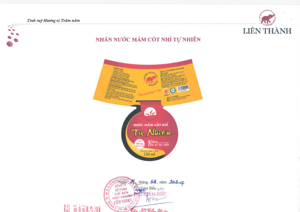 Thông báo bổ sung thiết kế nhãn sản phẩm Nước mắm cao đạm Liên Thành Nhãn Ngọc